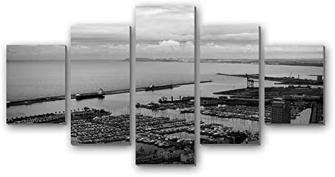 アリカンテ港の曇りの日 -世界 -#46636 - 白黒 5枚 パネル アートパネル 現代壁の絵 壁掛け部屋飾り背景絵画 キャンバス写真 壁アートしゃしん 木枠付きの完成品 装飾 軽くて取り付けやすい